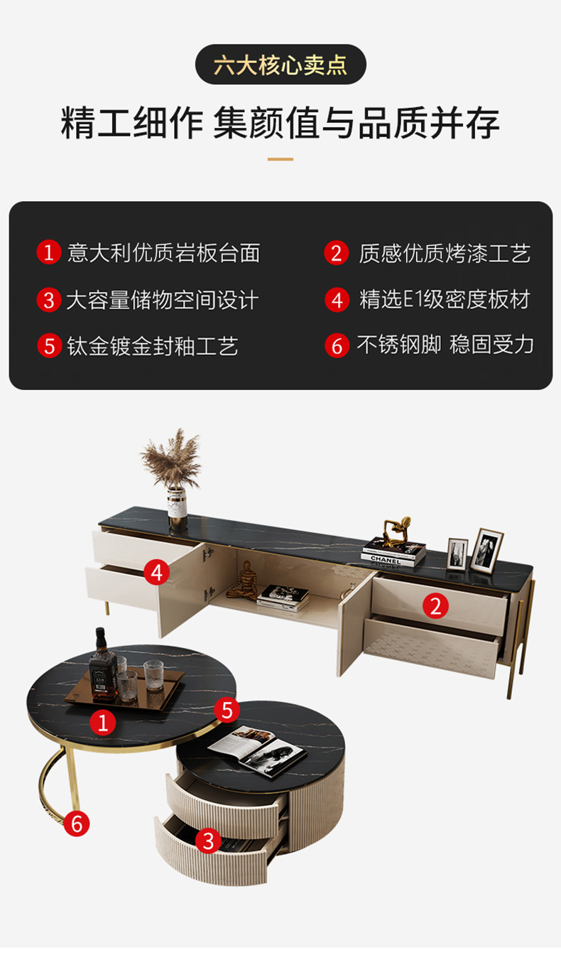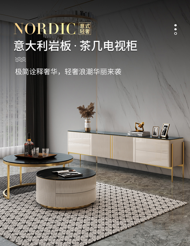 彩家居MYD-D206-BS现代简约轻奢岩板电视柜极简高端客厅