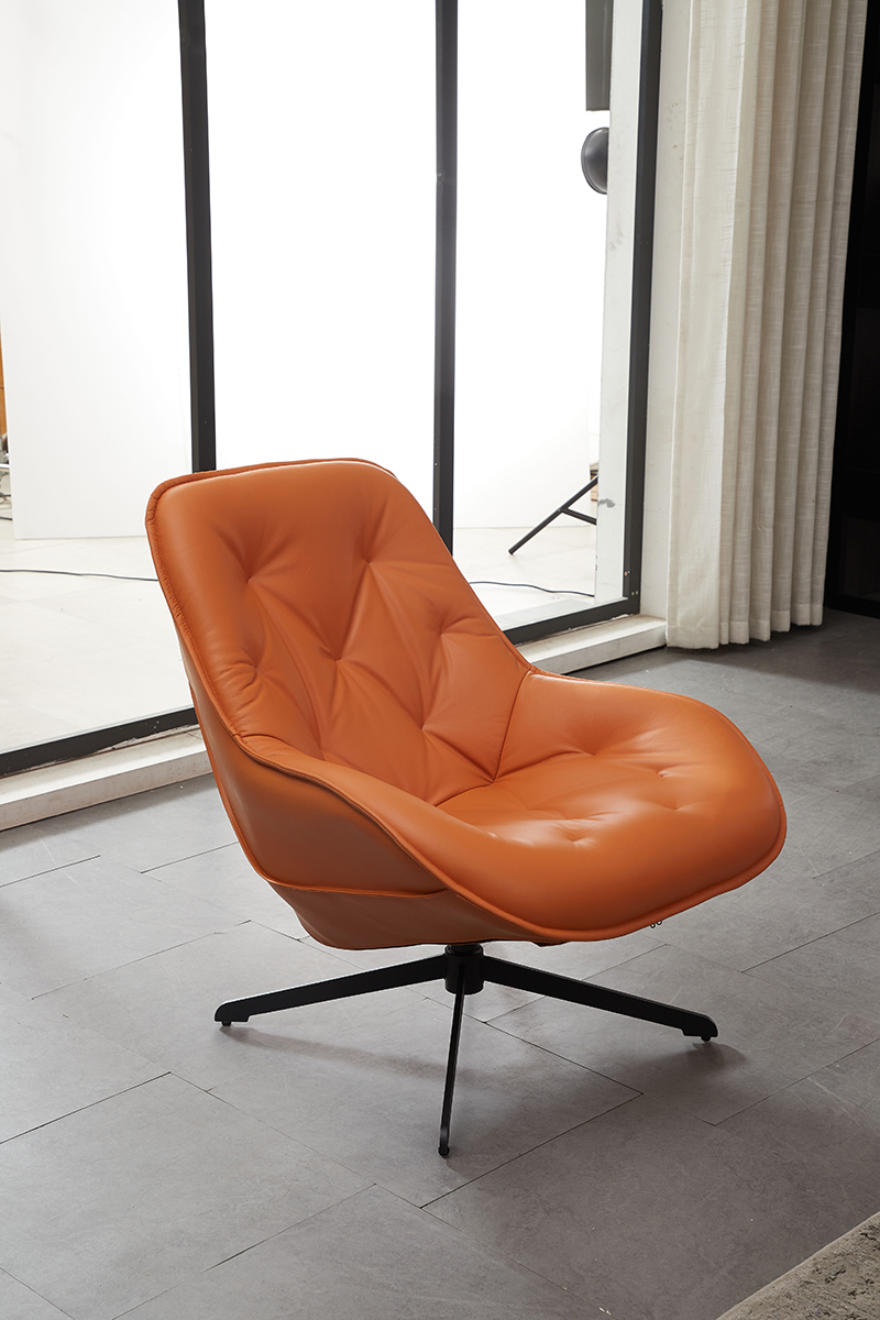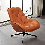 彩家居MYF-K001-MD休闲椅北欧实木真皮沙发椅子现代阳台休闲客厅懒人