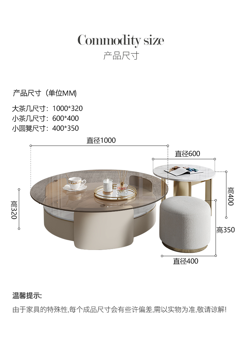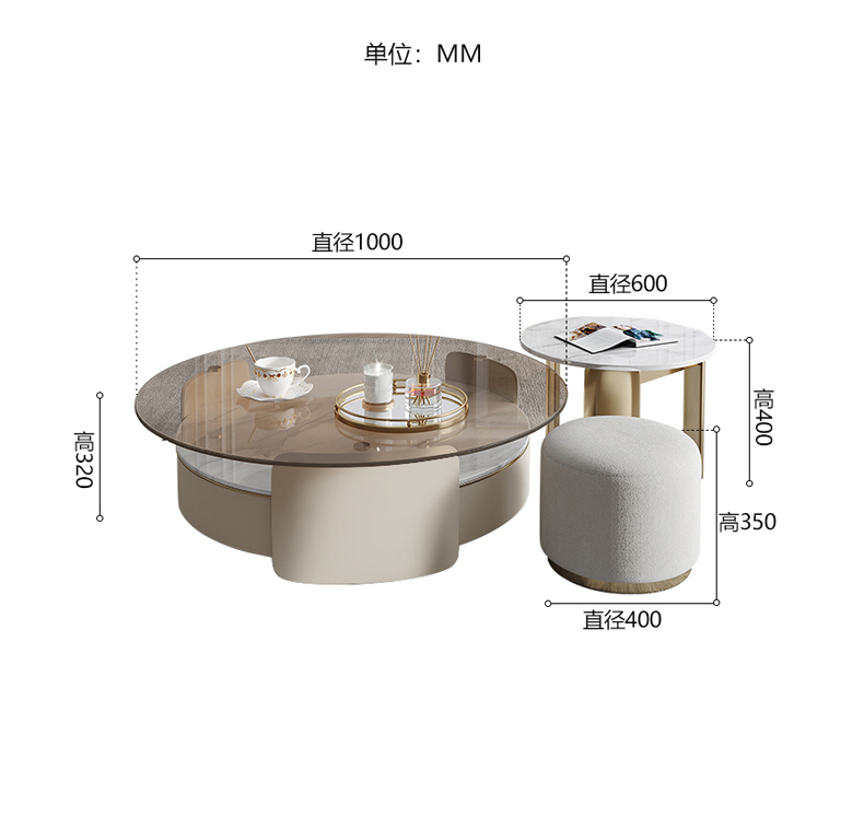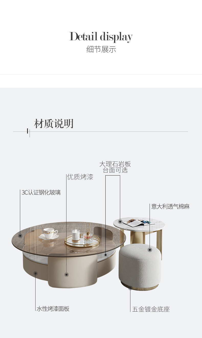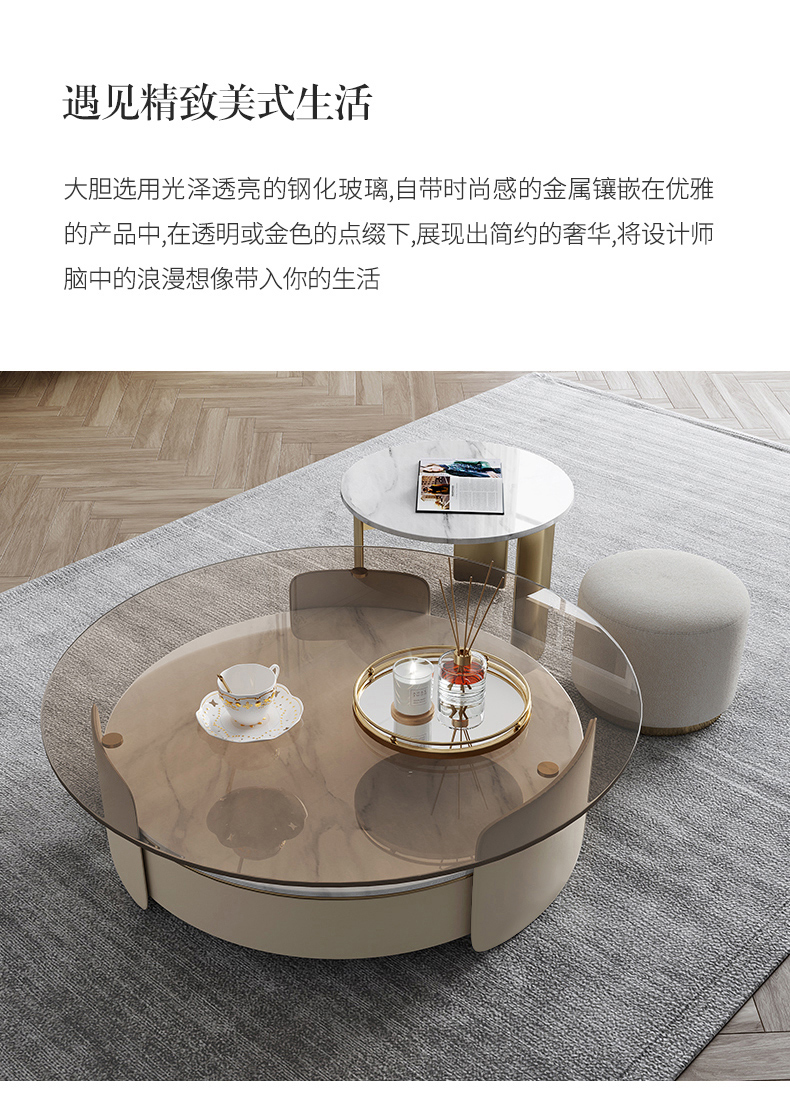 彩家居MYD-CJ1A-BS家用轻奢现代大气美观精致客厅茶几组合