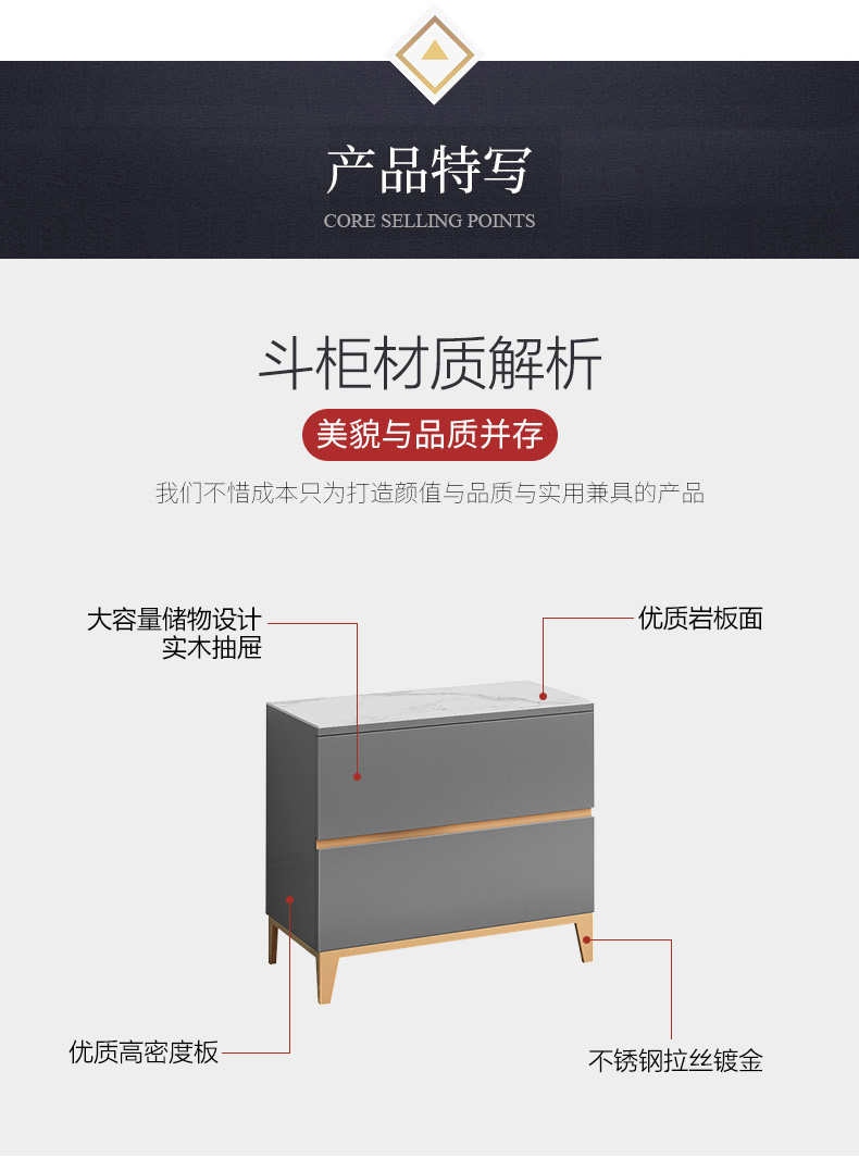 彩家居NYD-G806E-BS轻奢简约美观家用客厅岩板斗柜