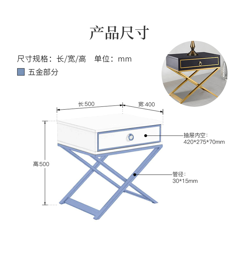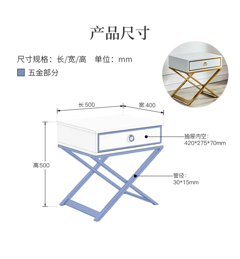 彩家居MYD-011C-BS轻奢现代大气美观精致家用卧室床头柜