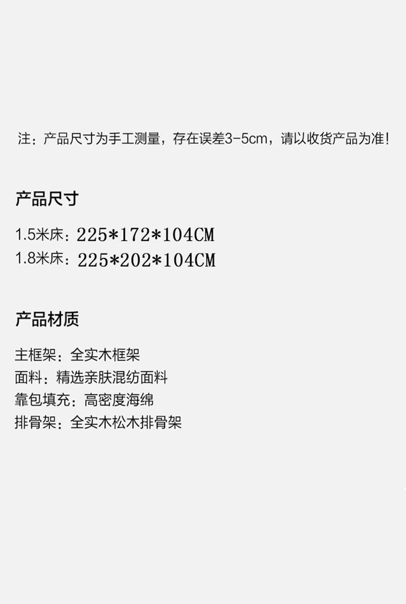 彩家居MYA-1920A-MD大床1.5/1.8m框架款/气动高箱款(布)双人床北欧风格现代简约床