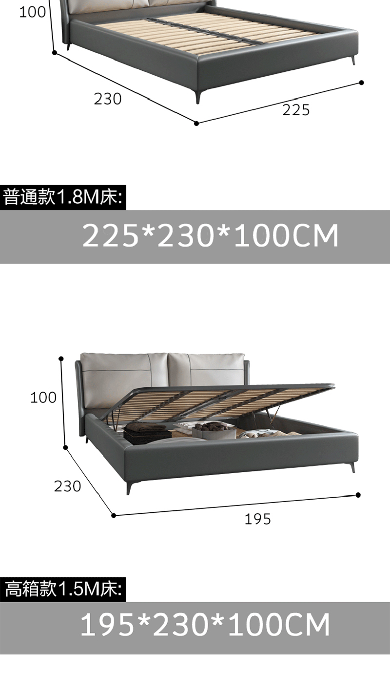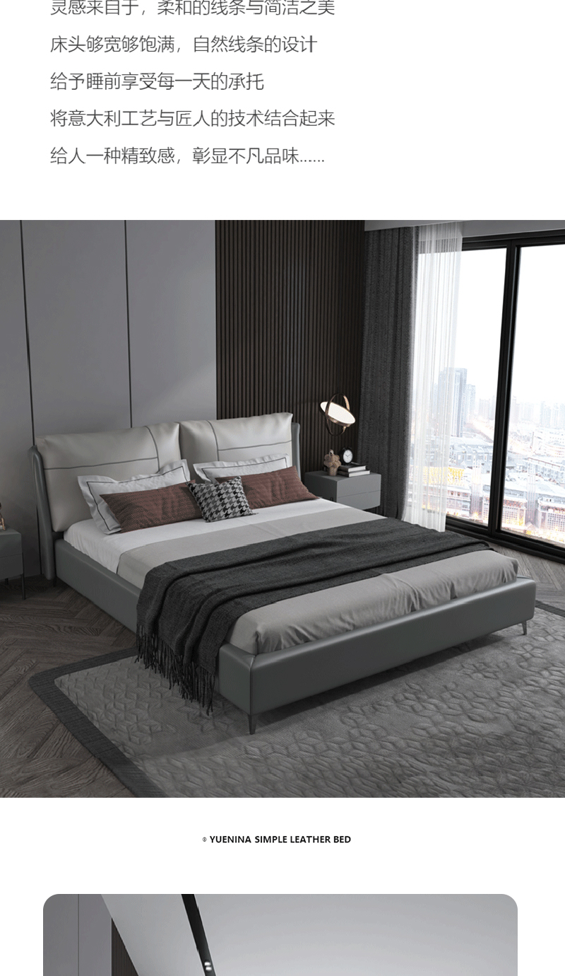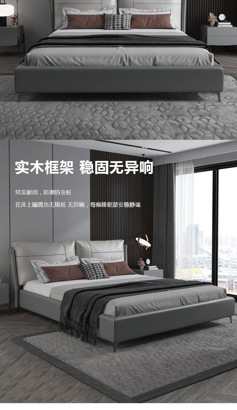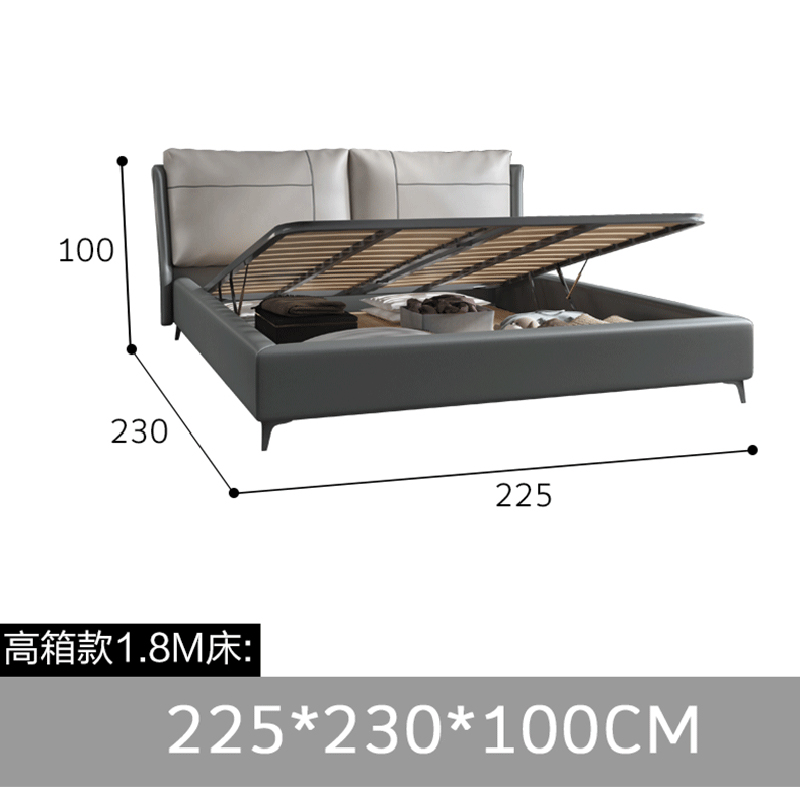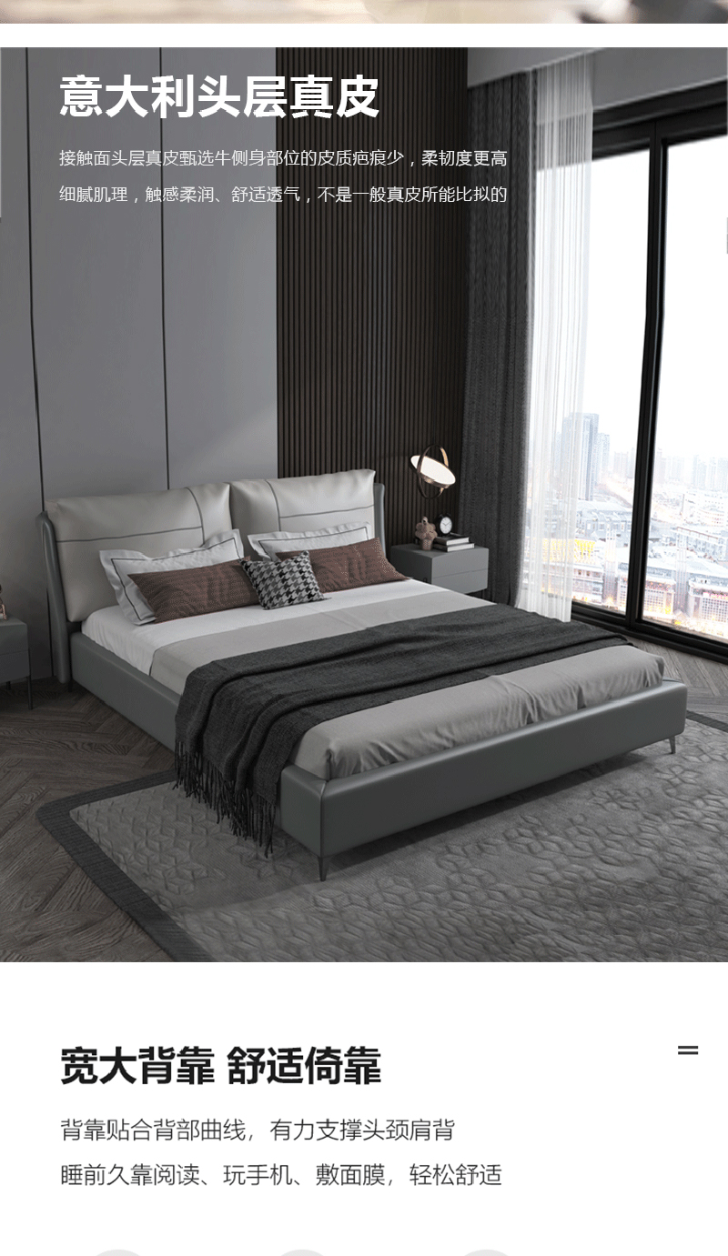 彩家居MYA-C034-MD大床1.5/1.8m框架款/气动皮款现代极简真皮床