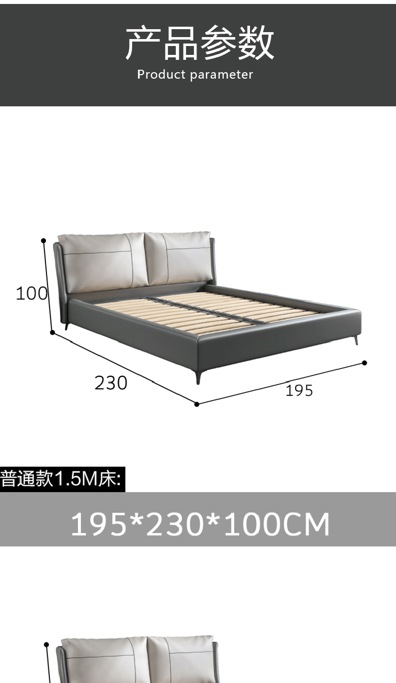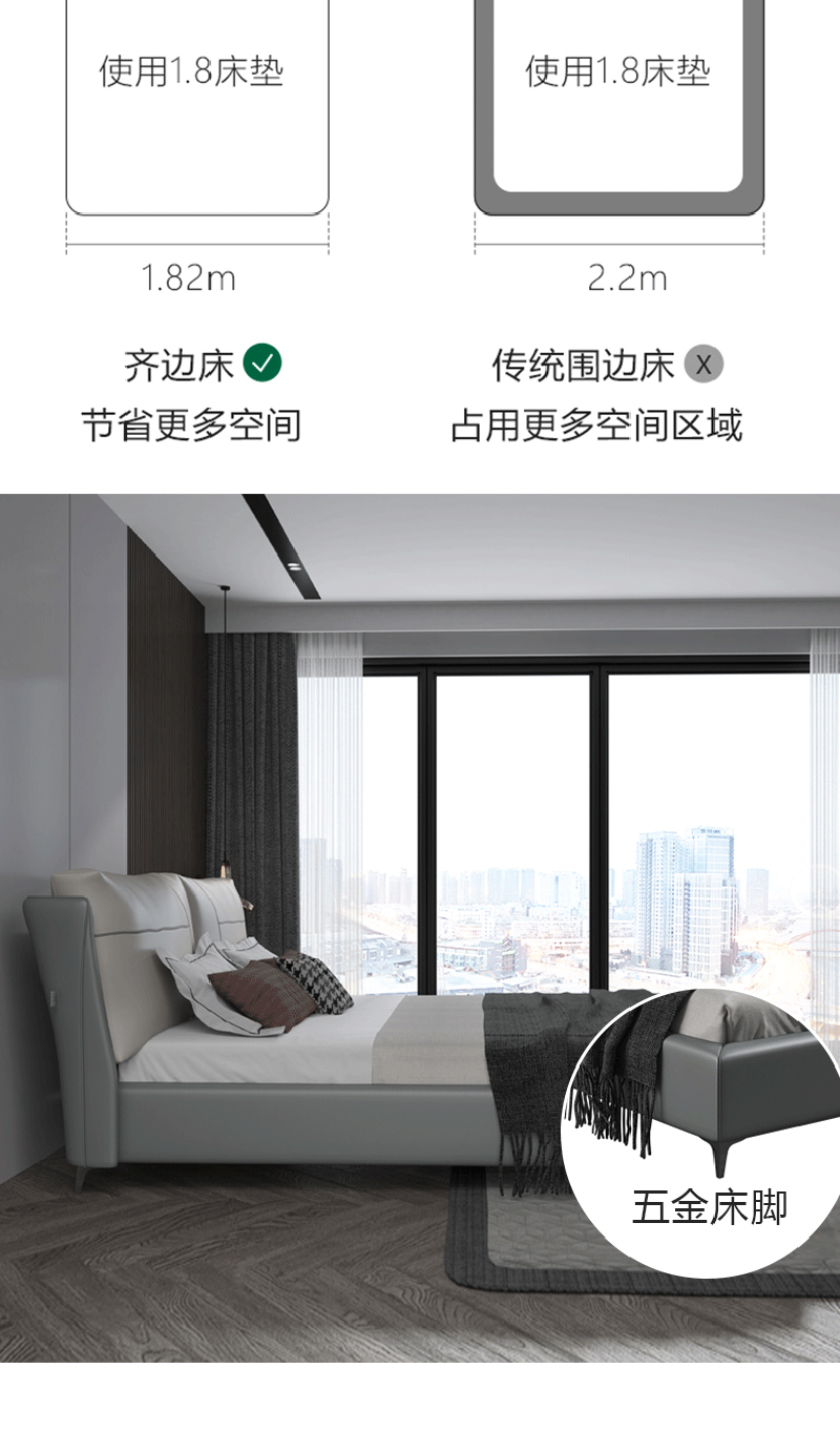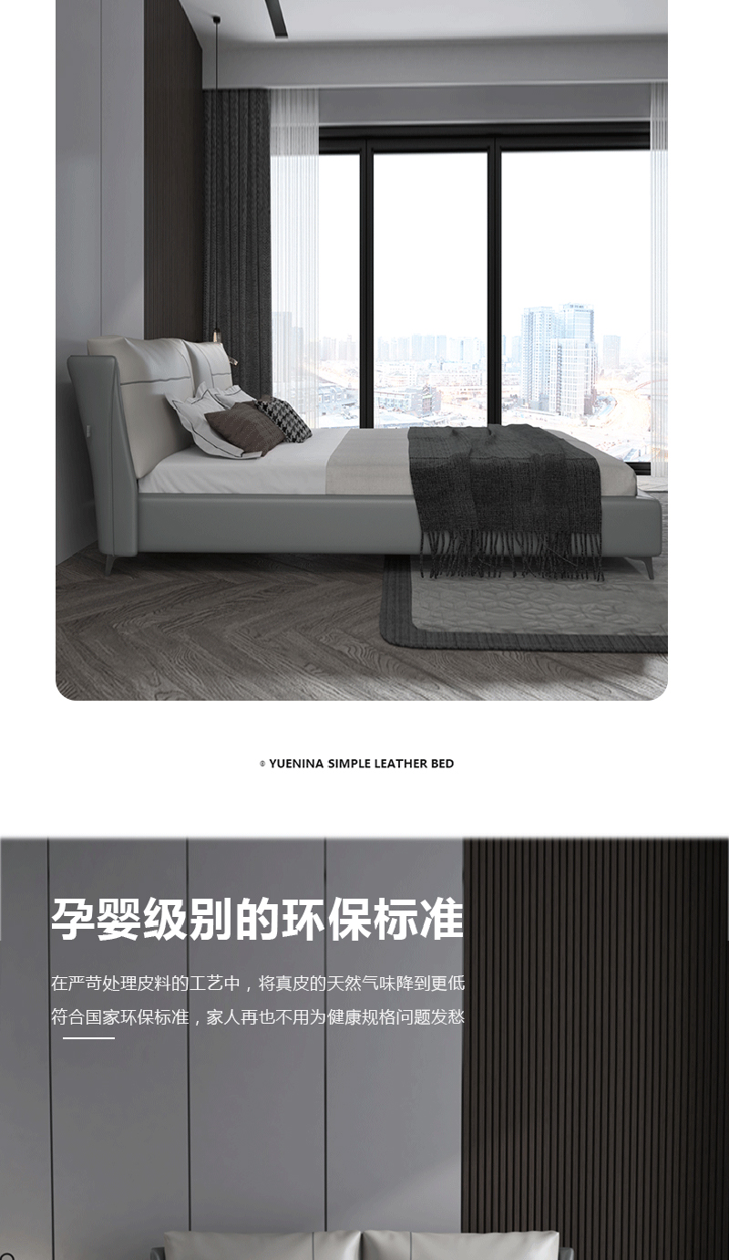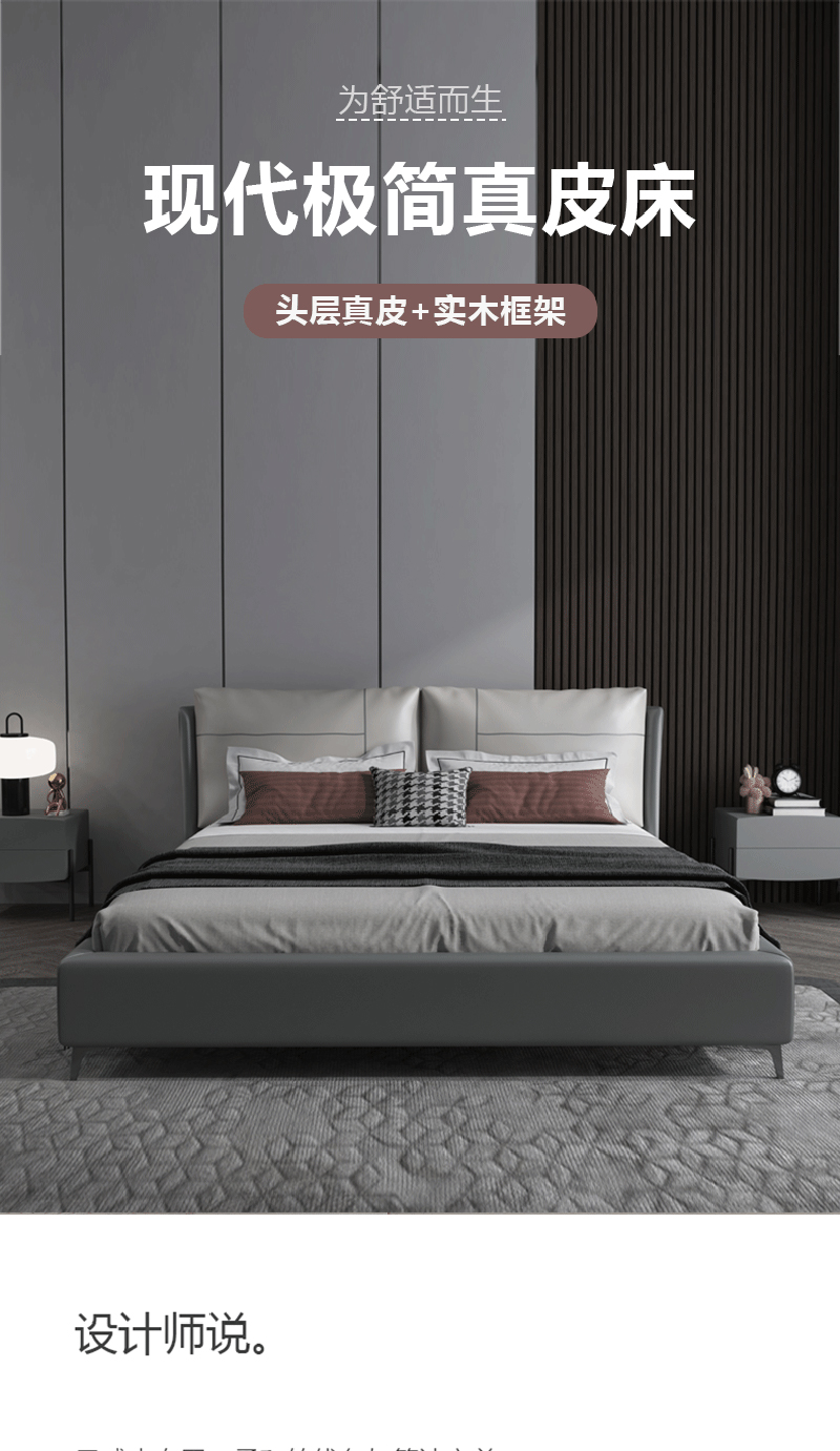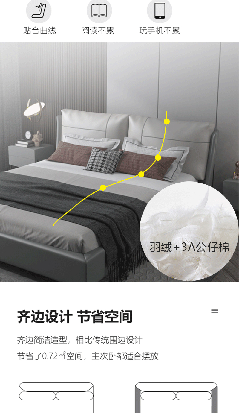 彩家居MYA-C034-MD大床1.5/1.8m框架款/气动皮款现代极简真皮床