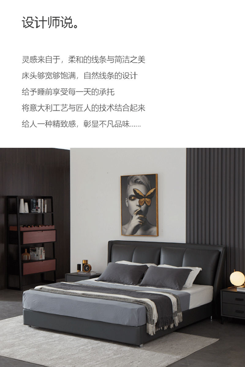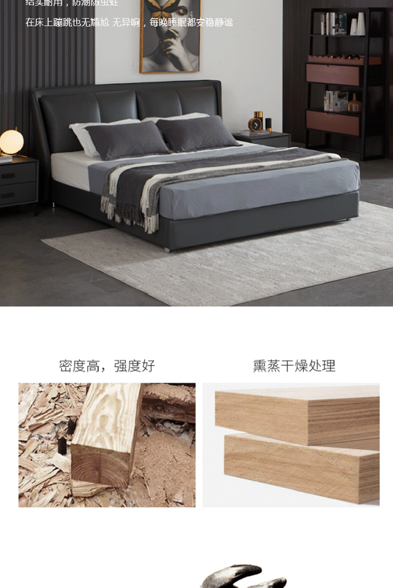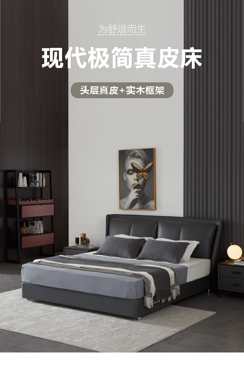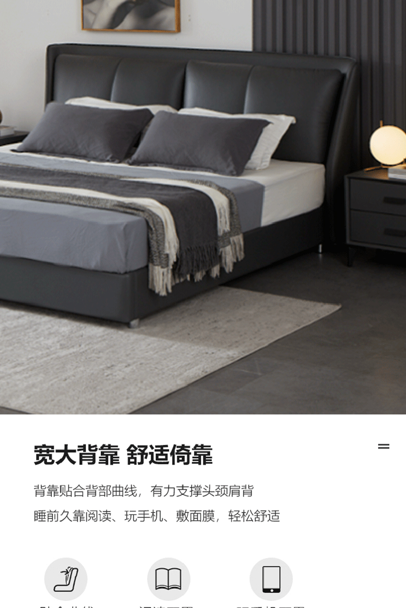彩家居住MYA-6261A-MD大床1.5/1.8m框架款/气动高箱款现代极简真皮床