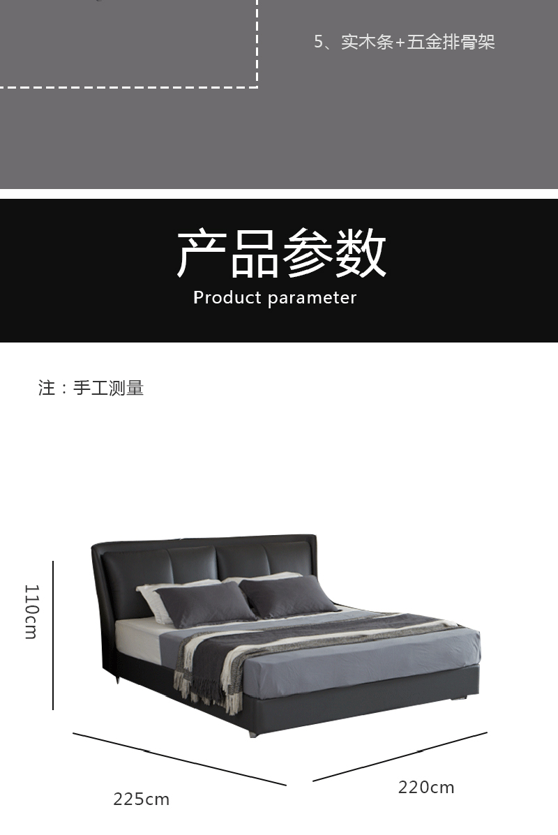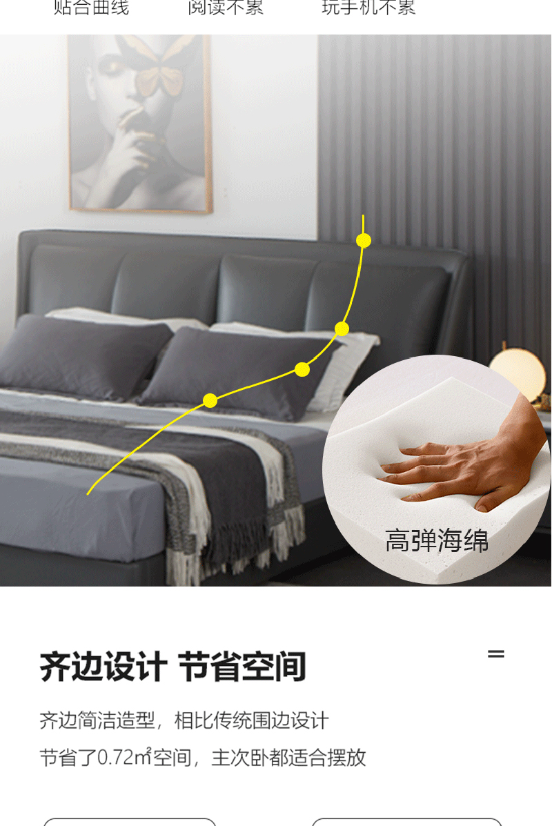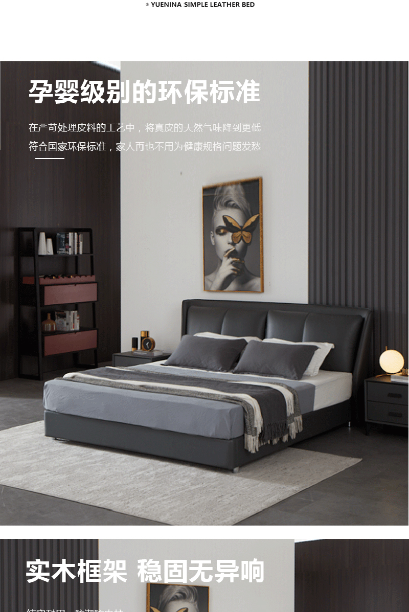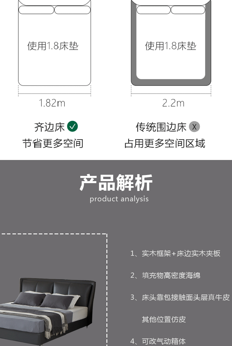 彩家居住MYA-6261A-MD大床1.5/1.8m框架款/气动高箱款现代极简真皮床