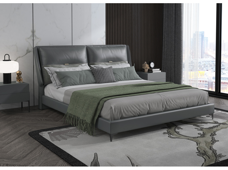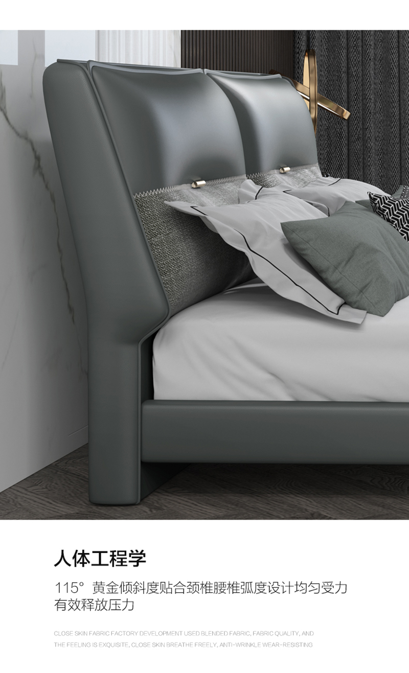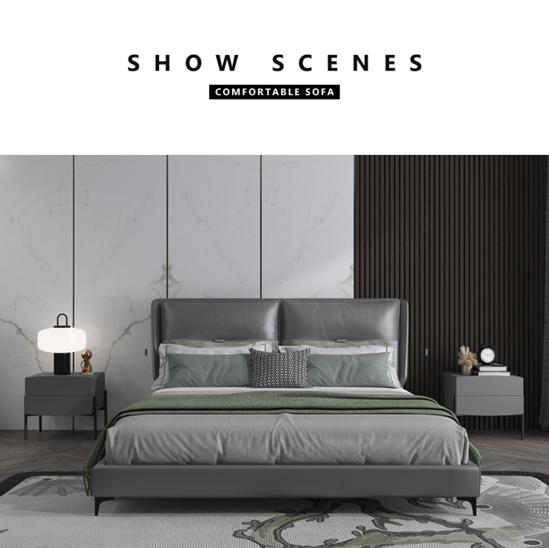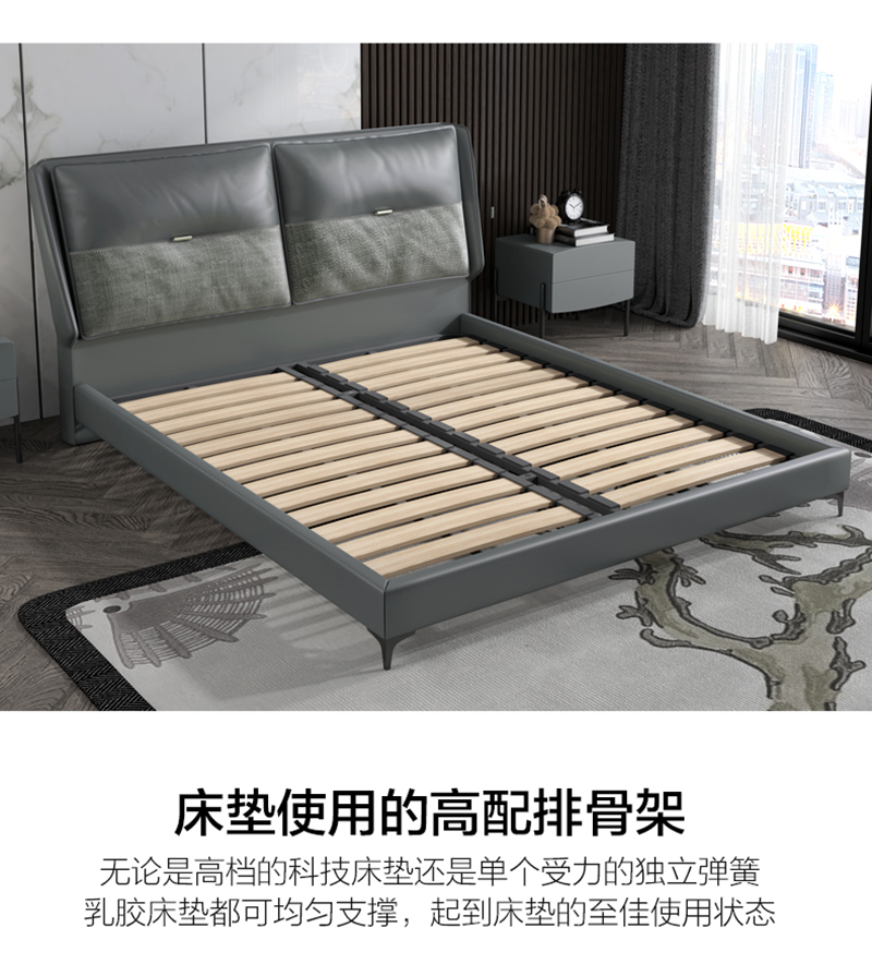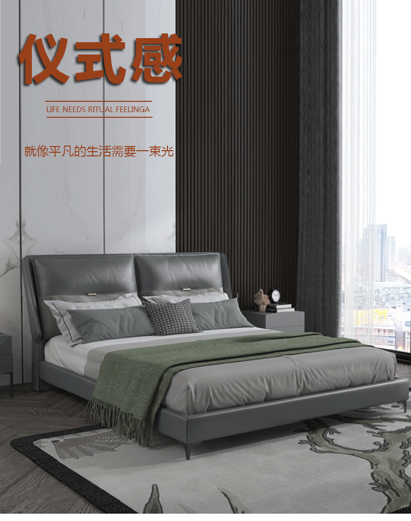 彩家居MYA-ML017-MD大床1.5/1.8m框架款/气动高箱款(皮款)意式极简主卧真皮床