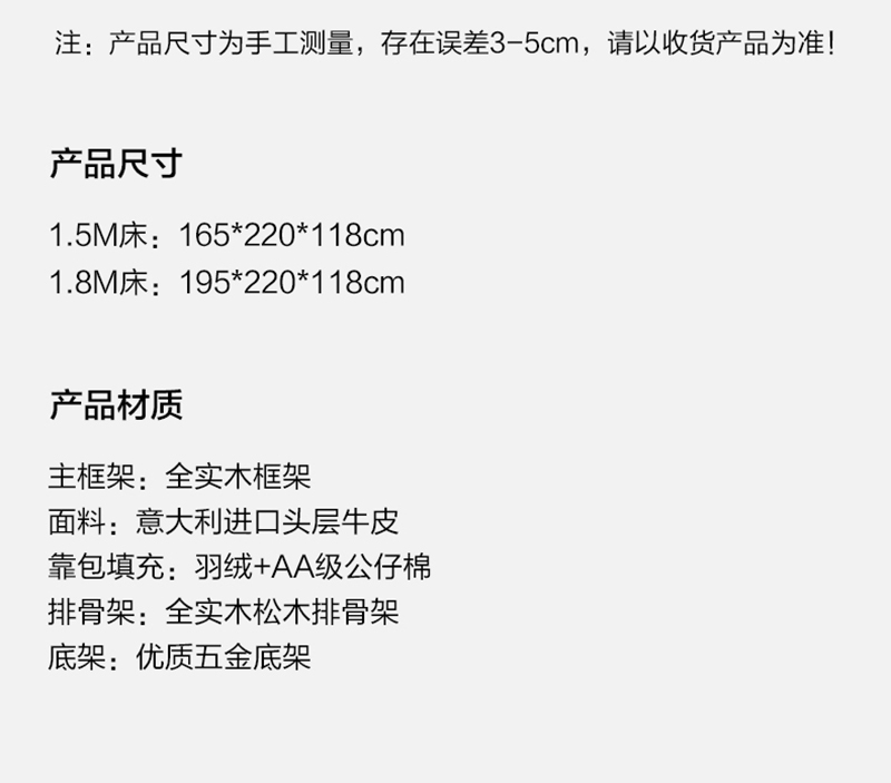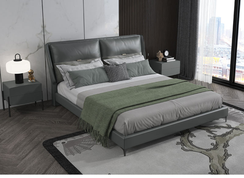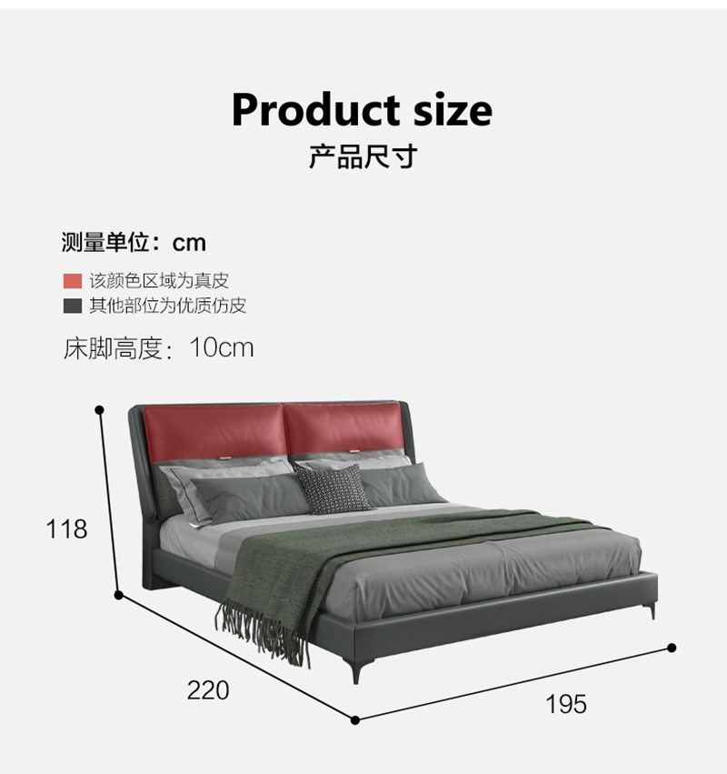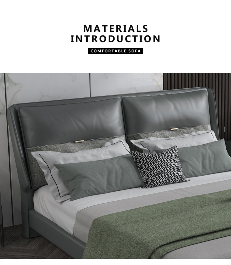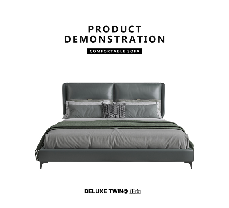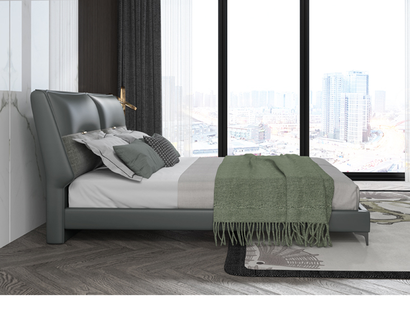 彩家居MYA-ML017-MD大床1.5/1.8m框架款/气动高箱款(皮款)意式极简主卧真皮床