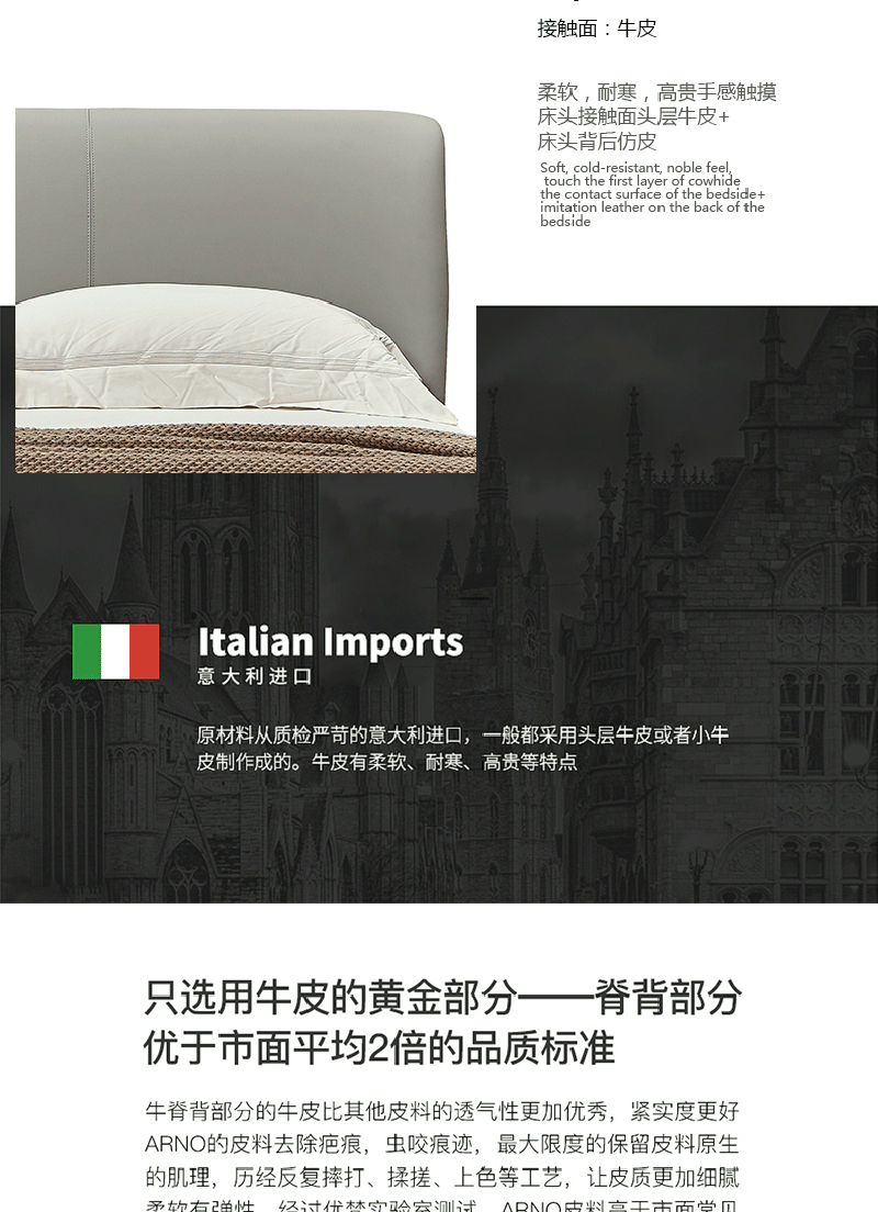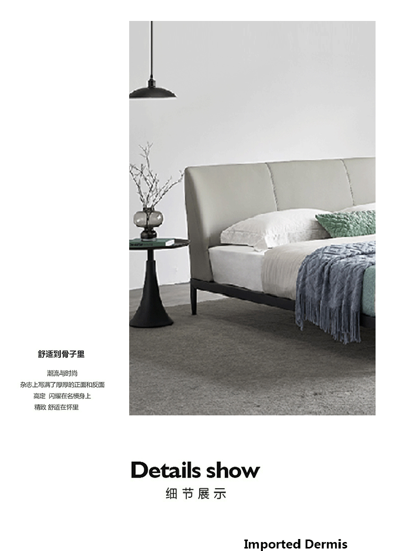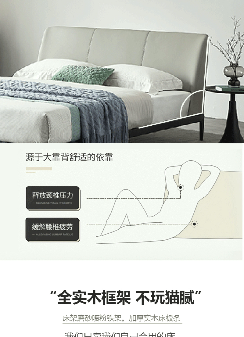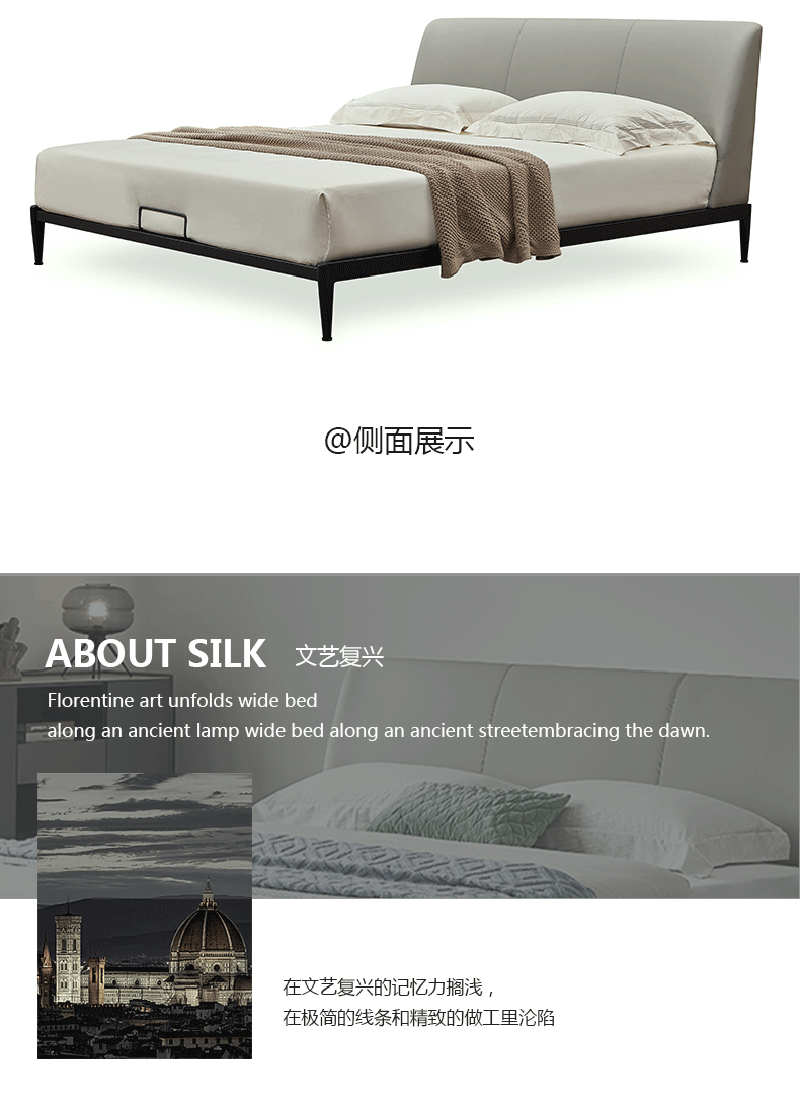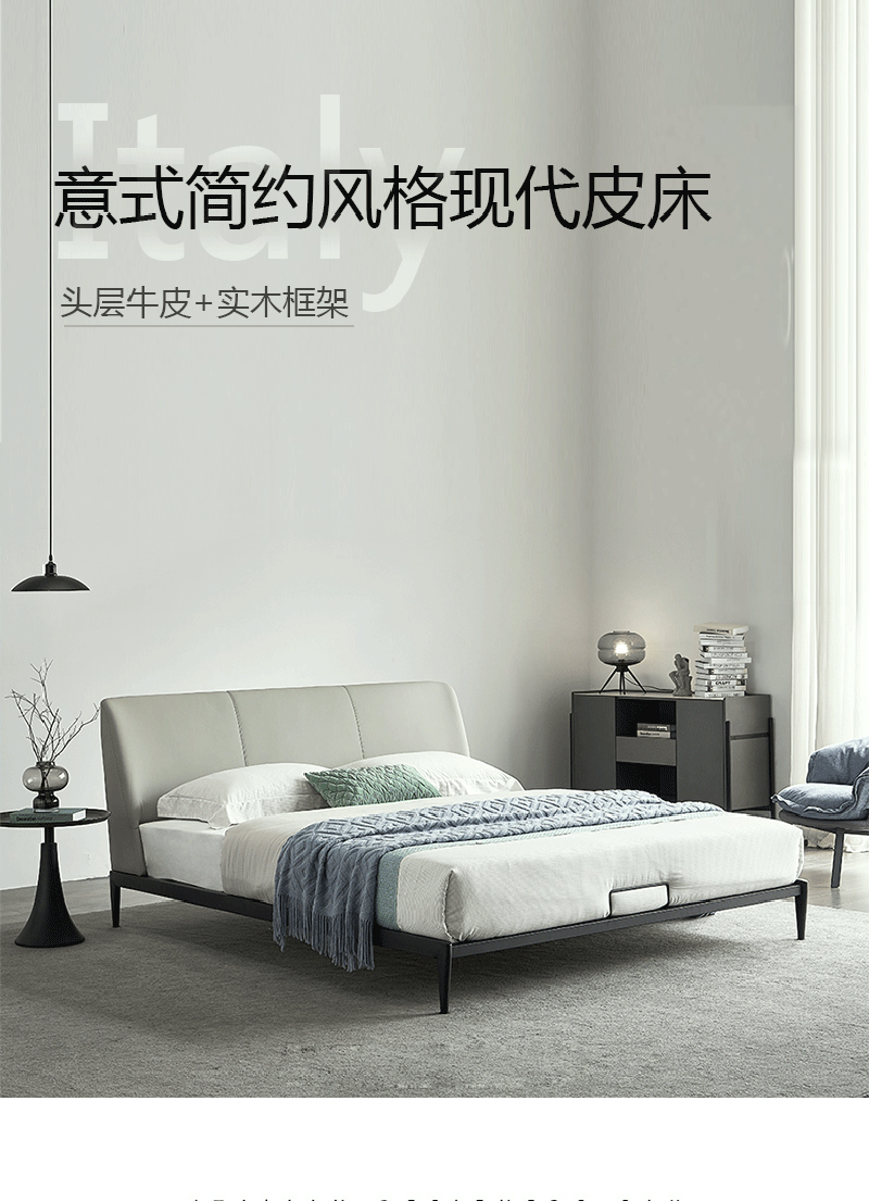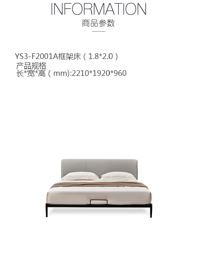 彩家居MYA-F2001A-MD框架床(1.8*2.0)意式简约风格皮床