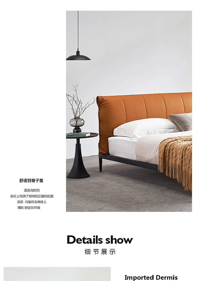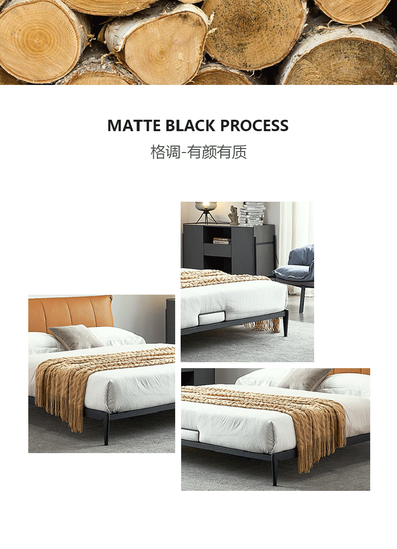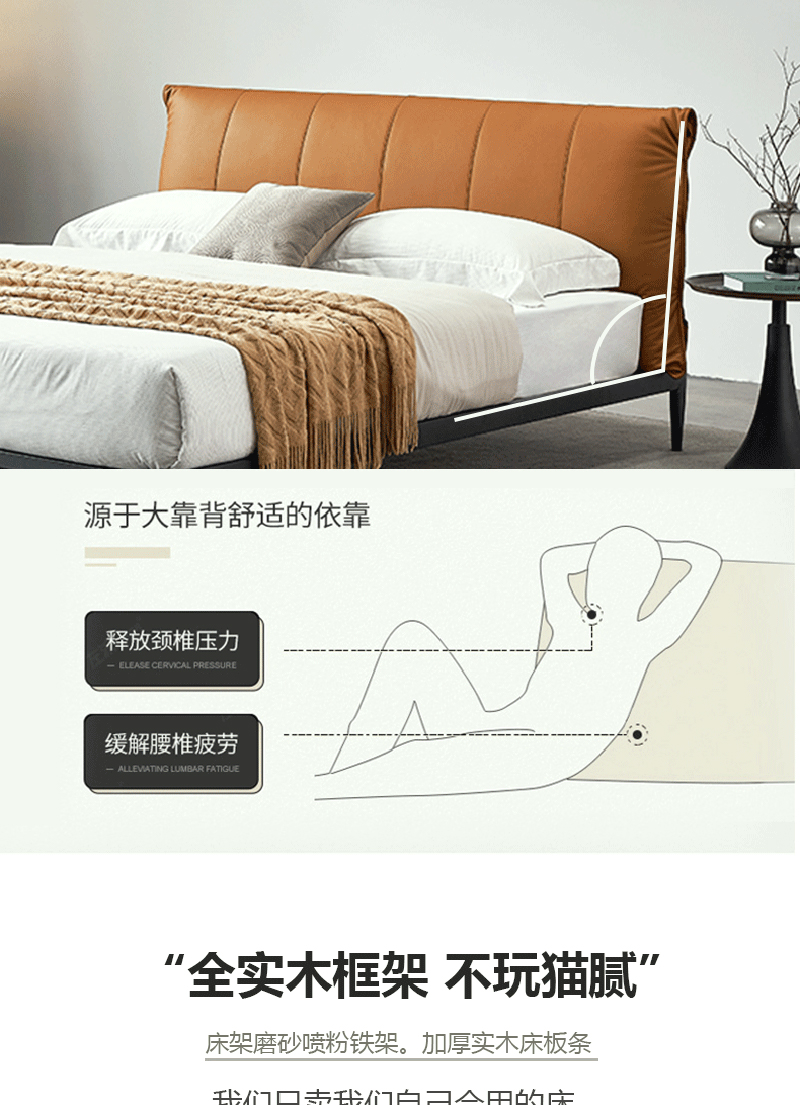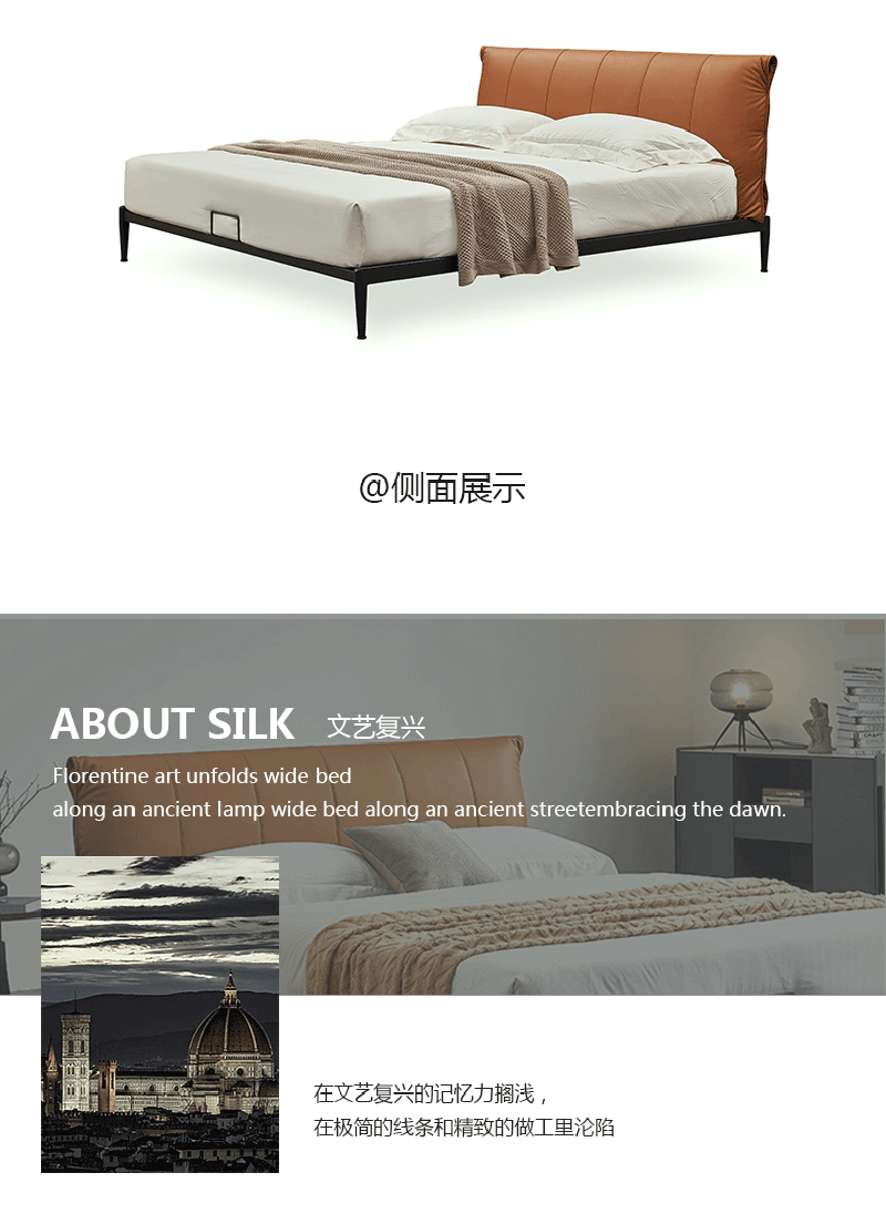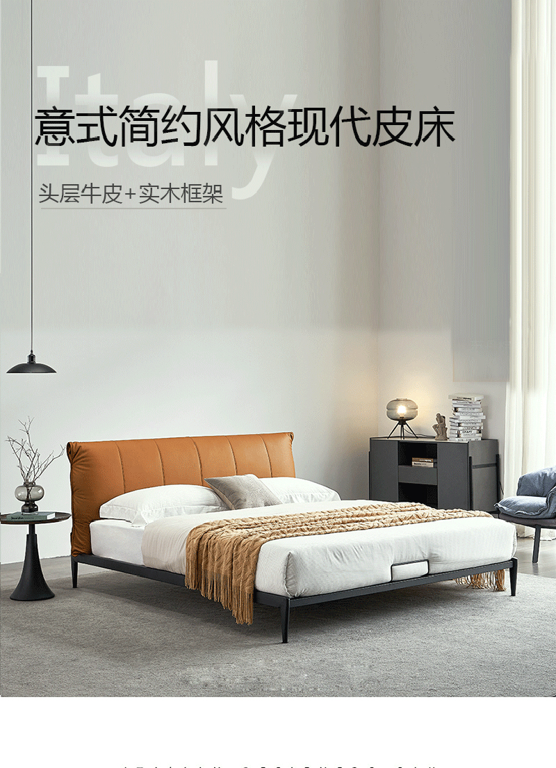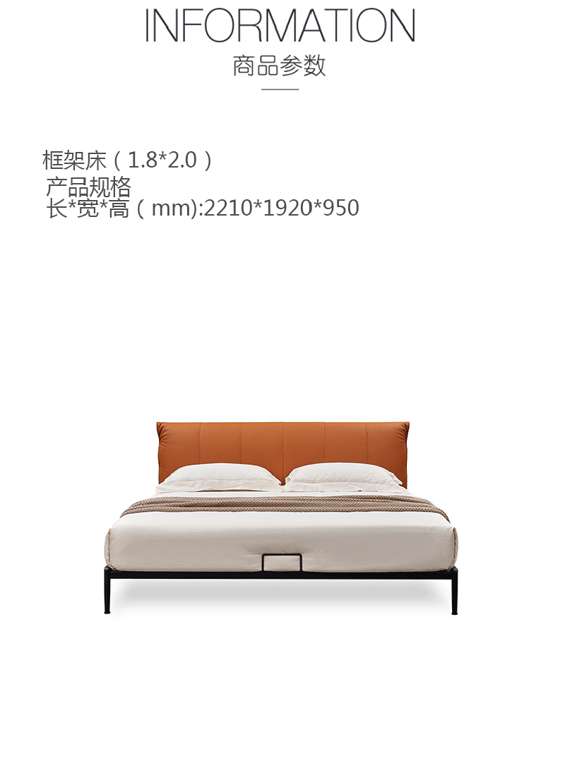 彩家居MYA-F2005-MD框架床(1.8*2.0)意式简约风格现代皮床