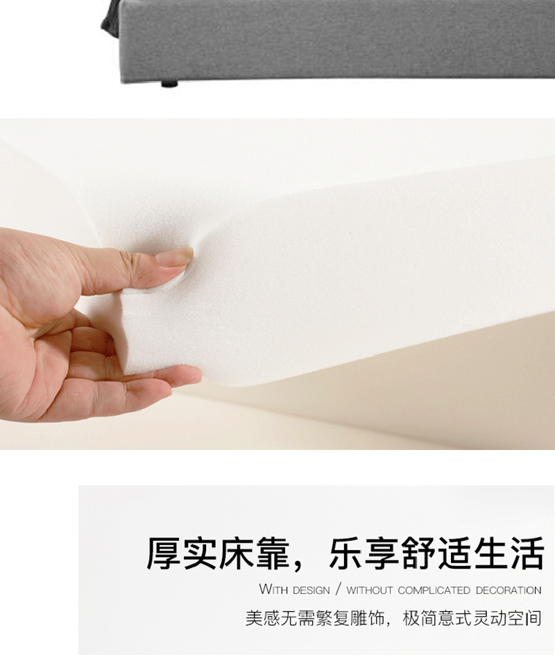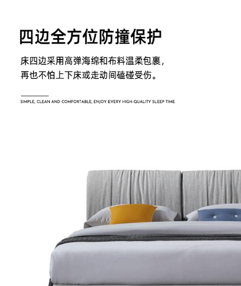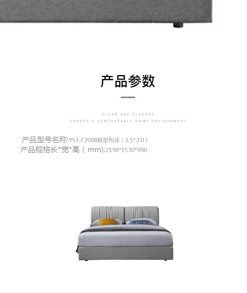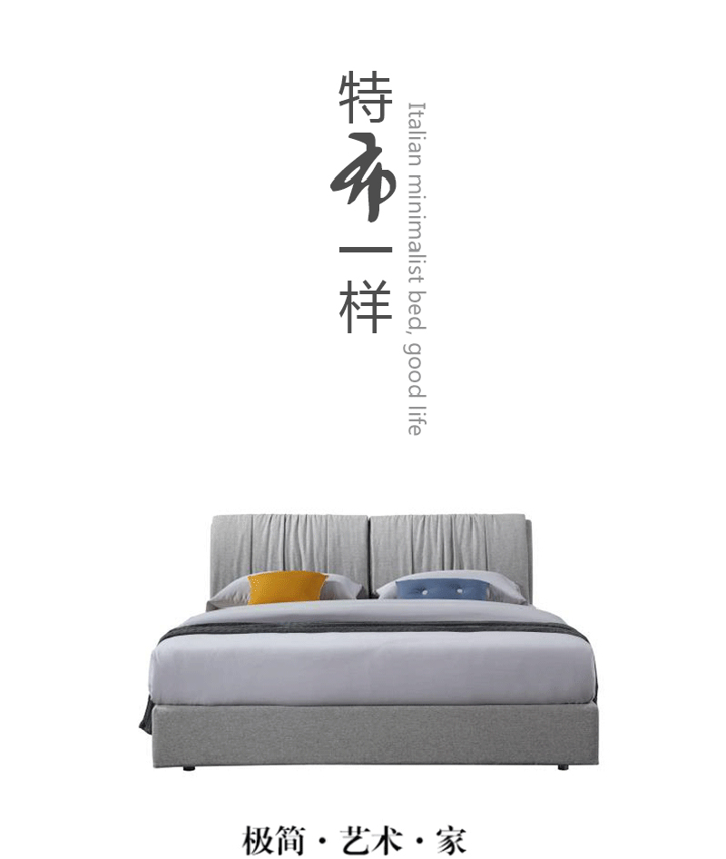彩家居MYA-F2008-MD框架布床(1.5*2.0)简约风格现代双人床