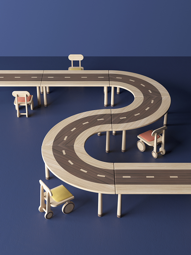 彩家居极速跑道系列SPE-TE2跑道桌子家用儿童专用创意卡通方桌北美白蜡木美国胡桃木