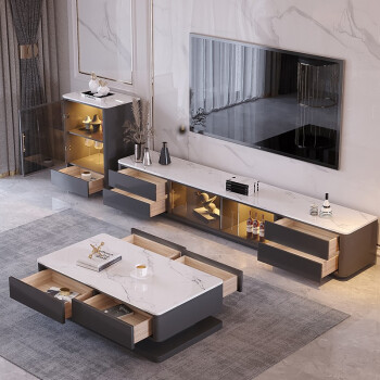 北欧轻奢大理石茶几电视柜现代简约设计师款客厅组合