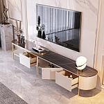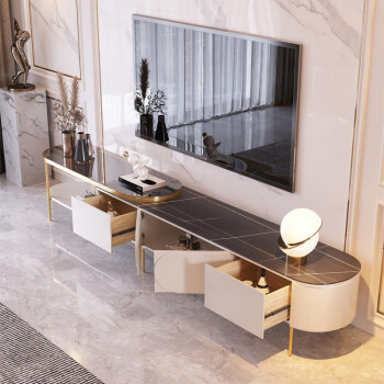 轻奢岩板茶几电视柜组合现代简约小户型茶几椭圆形客厅家用