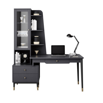 意式轻奢书柜书桌一体学生写字桌书房家用简约书架组合