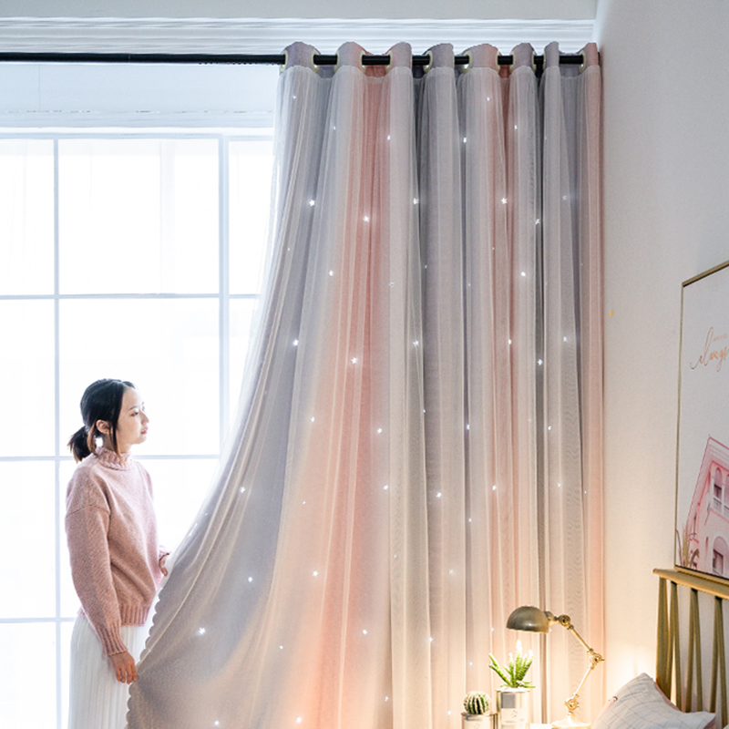 时尚客厅免打孔安装窗帘卧室遮光布女孩公主窗帘
