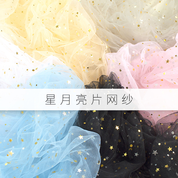 星星纱黑色亮片网眼蕾丝软沙网纱