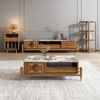 高档现代新中式客厅轻奢北欧实木电视柜茶几组合