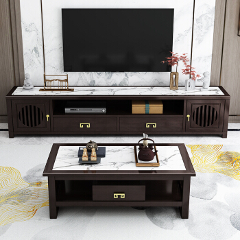 新中式电视柜茶几组合轻奢客厅实木地柜中国风家具