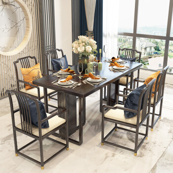 新中式实木餐桌椅组合长方形饭桌现代简约中式长餐桌可定制