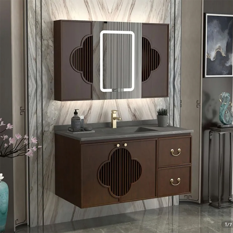 新中式轻奢岩板实木浴室柜卫浴吊柜组合