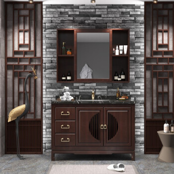 新中式双盆浴室柜组合卫生间橡木洗漱台盆柜卫浴柜