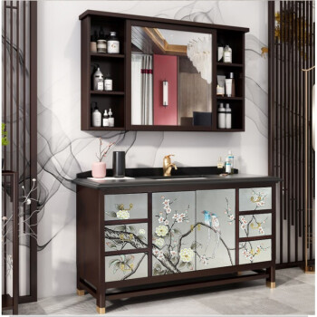 新中式浴室柜组合彩绘花鸟柜子落地式洗漱台