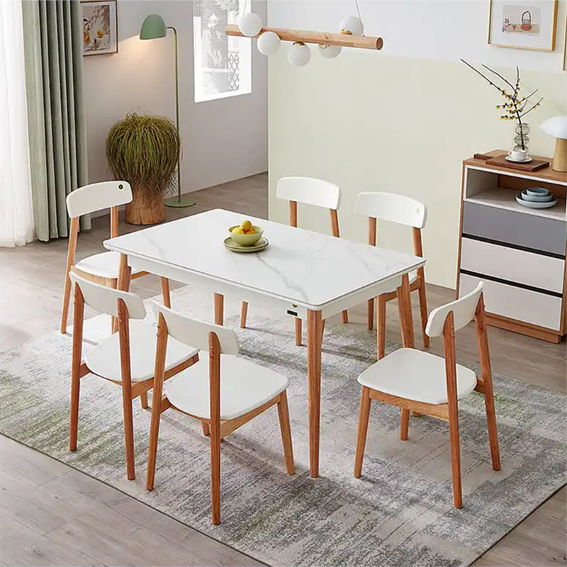 北欧餐桌椅折叠伸缩长方形饭桌实木框架钢化玻璃台面餐桌椅