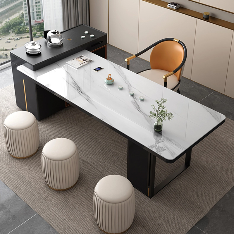 岩板书桌茶桌一体轻奢写字台现代简约书桌椅组合书桌茶桌