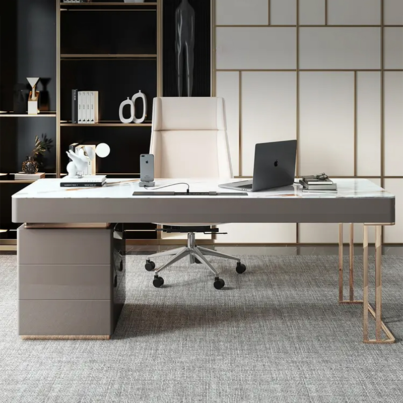 轻奢现代意式书房家用书桌椅组合岩板办公室电脑桌
