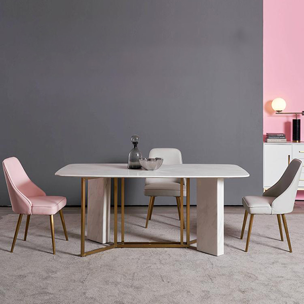 现代简约轻奢不锈钢长方形大理石餐桌椅组合