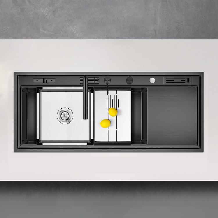 厨房黑色纳米不锈钢水槽超大单槽洗菜盆带刀架