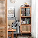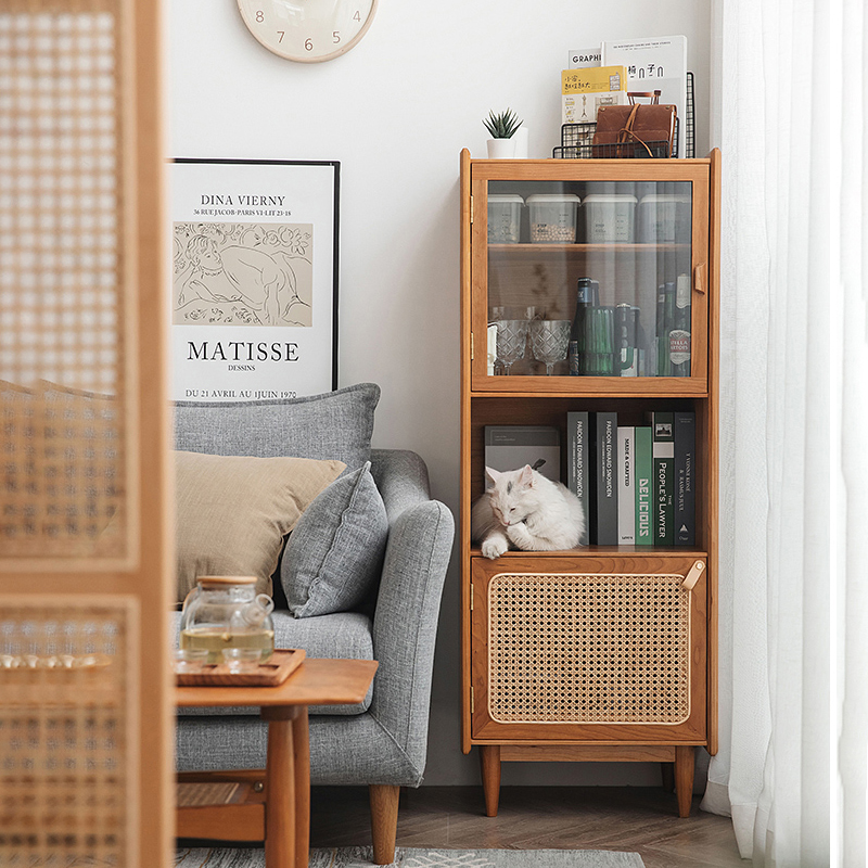 实木小尺寸餐边柜藤编高柜轻奢定制酒柜小户型储物柜
