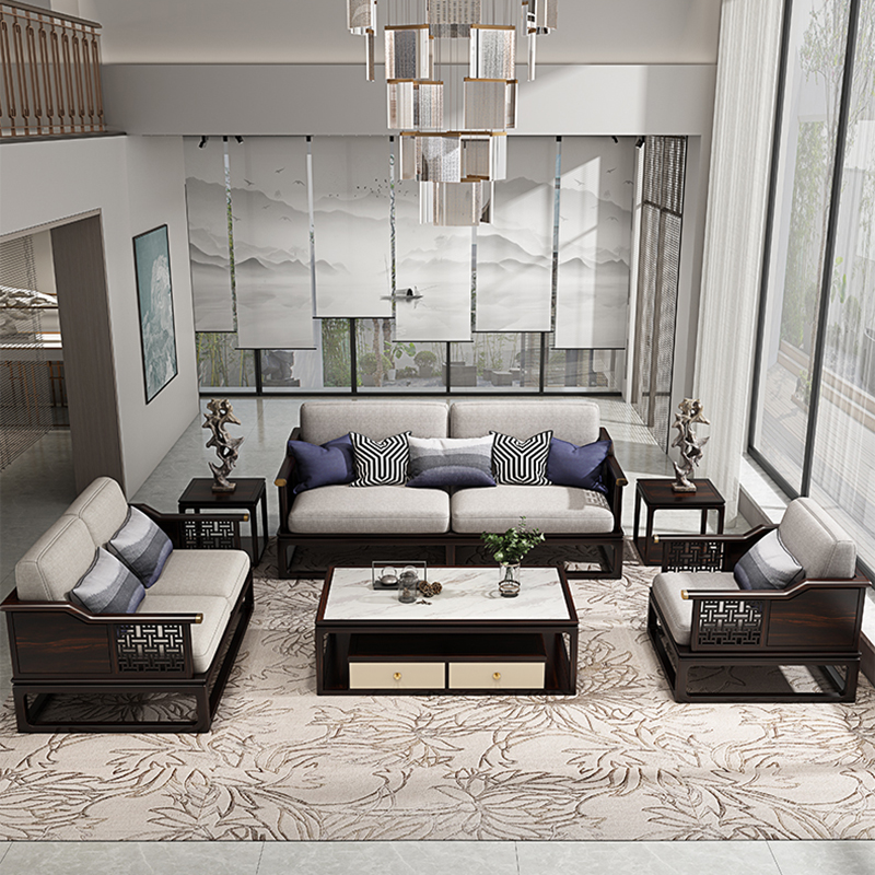新中式全实木沙发简约轻奢高端中国风客厅布艺沙发