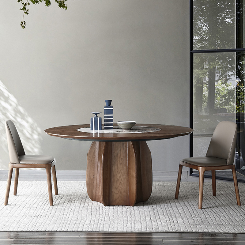 家用小户型岩板餐桌内嵌圆桌带转盘中式全实木餐桌椅组合