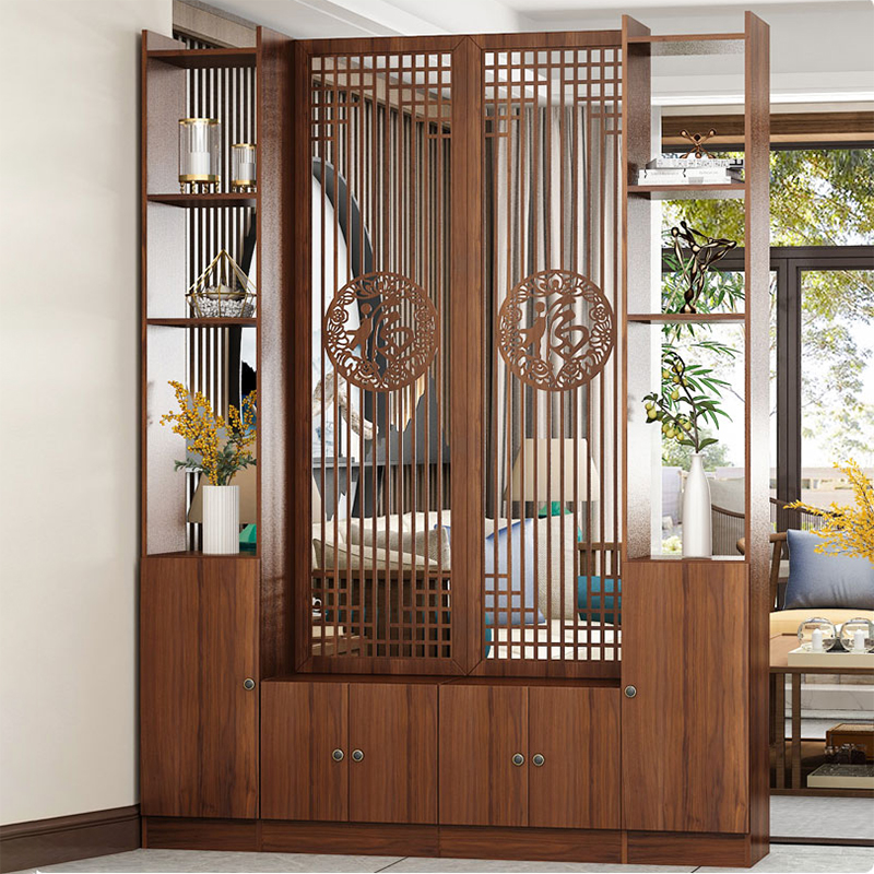 新中式入户屏风客厅木质客厅装饰玄关隔断柜