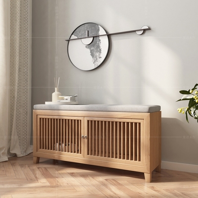 新中式家用门口实木换鞋凳创意长条凳多功能可坐穿鞋柜