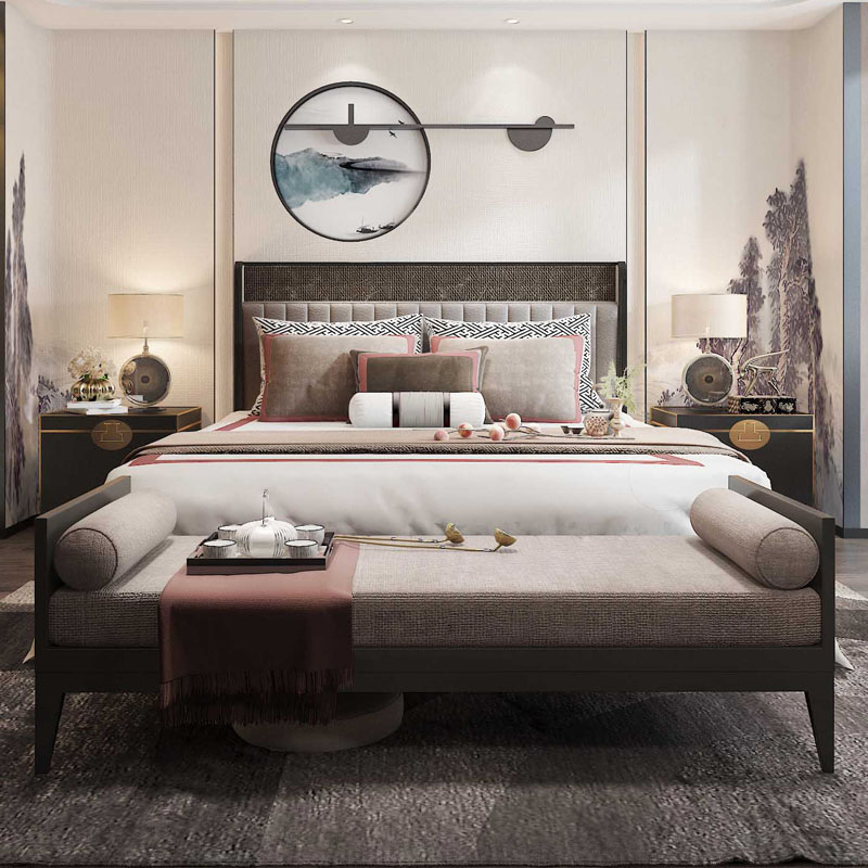 新中式床尾凳卧室脚踏实木简约现代床前沙发