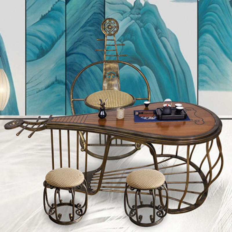 新中式茶桌椅组合禅意茶台实木铁艺功夫琴茶几客厅阳台艺术茶道桌