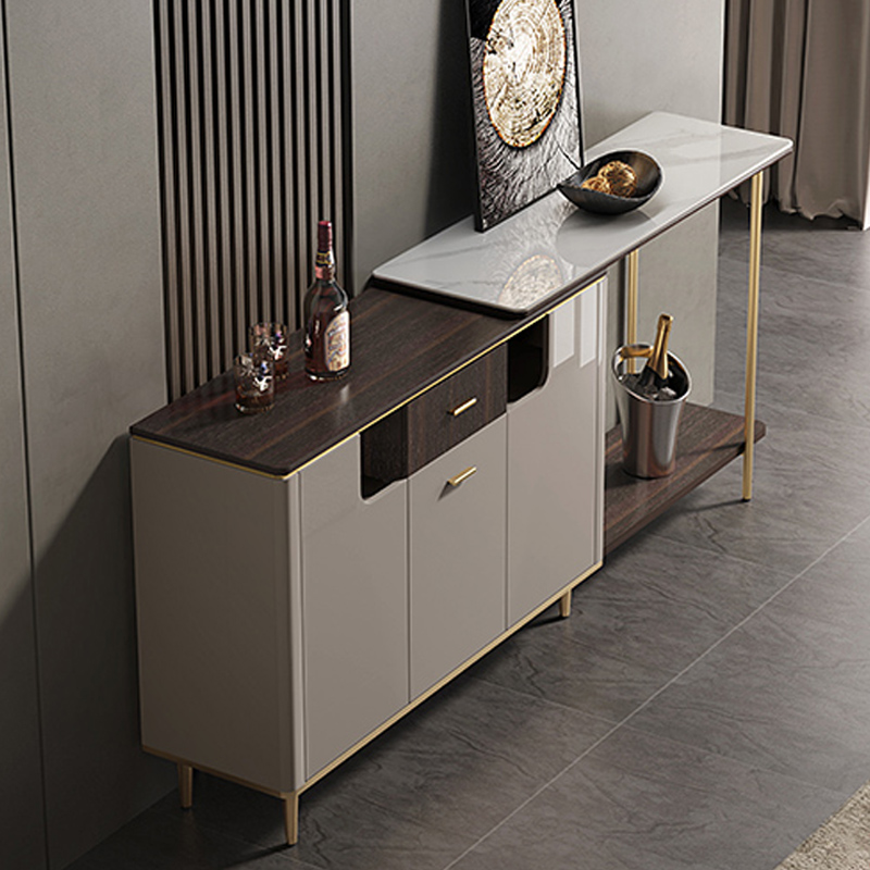 意式轻奢岩板餐边柜家用厨房客厅小户型现代简约可伸缩置物柜
