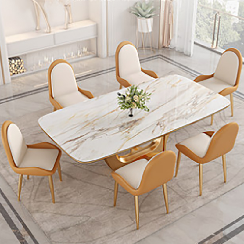 轻奢岩板长方形餐桌家用饭桌现代简约小户型进口创意餐桌椅子组合