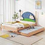 儿童卡通公主床实木抽拉拖床子母床1.5米女孩男孩姐妹单人床