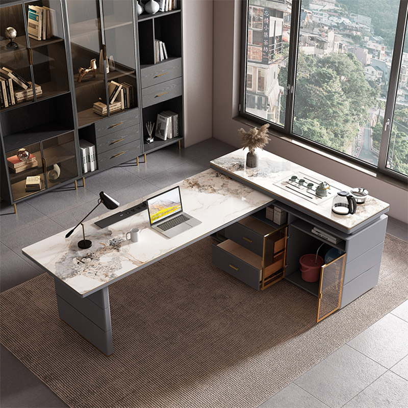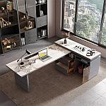 轻奢书桌茶桌一体岩板多功能现代老板总裁桌简约转角办公桌写字台