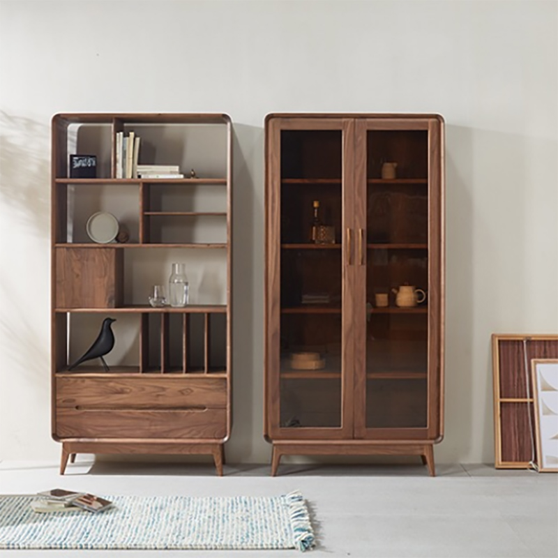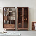 日式简约黑胡桃原木组合书柜置物柜樱桃木收纳柜书架立柜