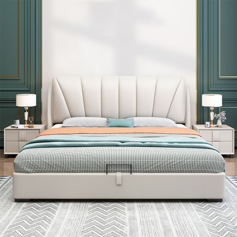 真皮床现代简约卧室床1.8米婚床轻奢型主卧榻榻米欧式软床皮艺床