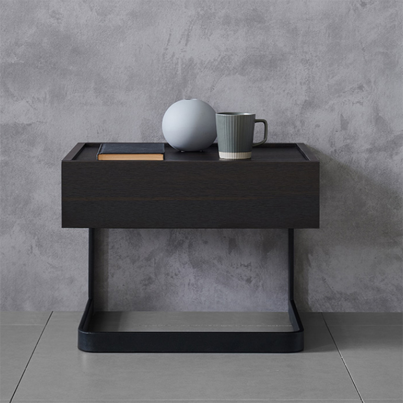 意式极简床头柜现代轻奢简约卧室床边抽屉柜烟熏橡木置物架
