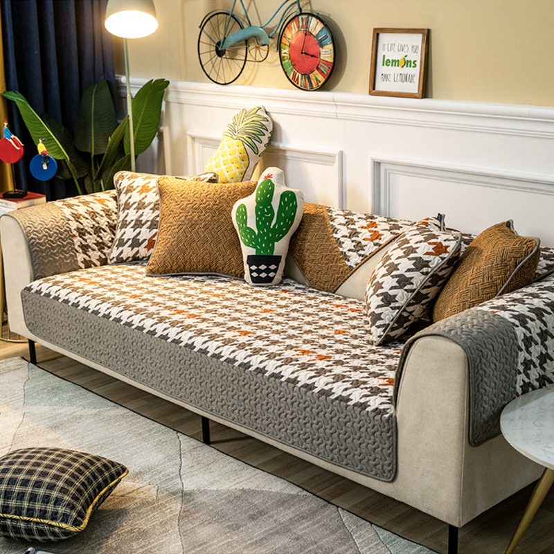 千鸟格沙发垫子北欧简约现代布艺防滑套罩