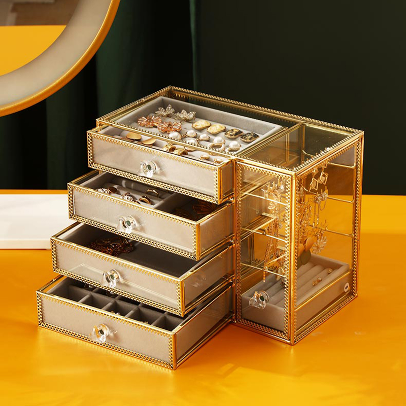 轻奢风玻璃首饰盒欧式珠宝收纳盒子