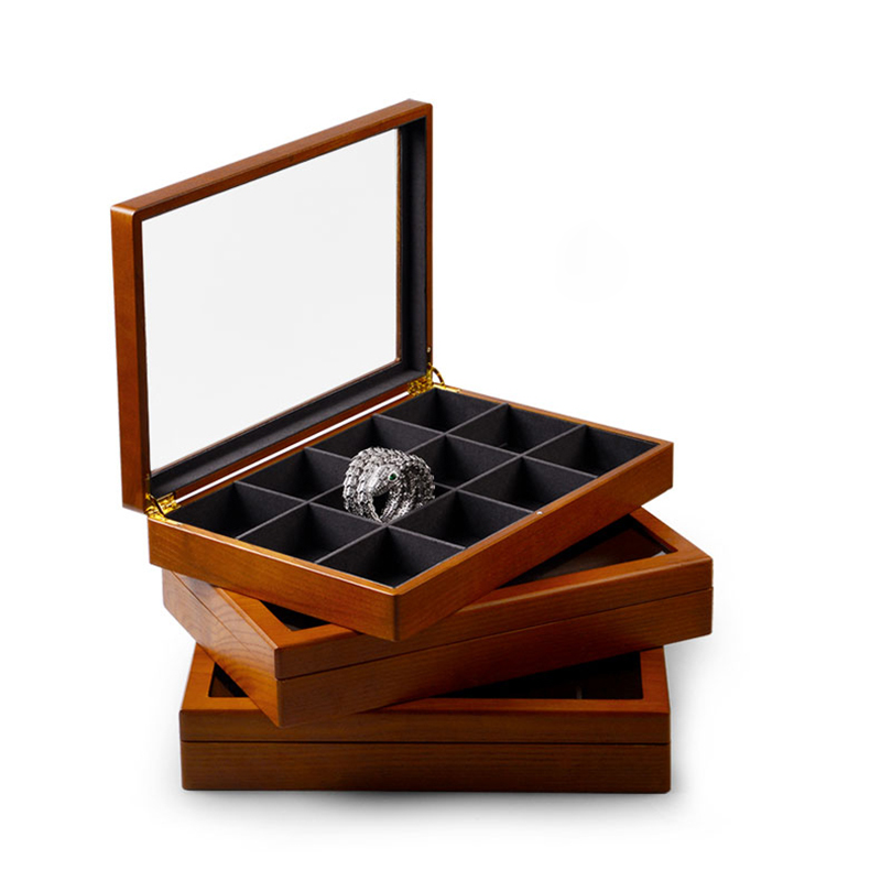 高档实木盒子珠宝首饰盒透明防尘收纳盒