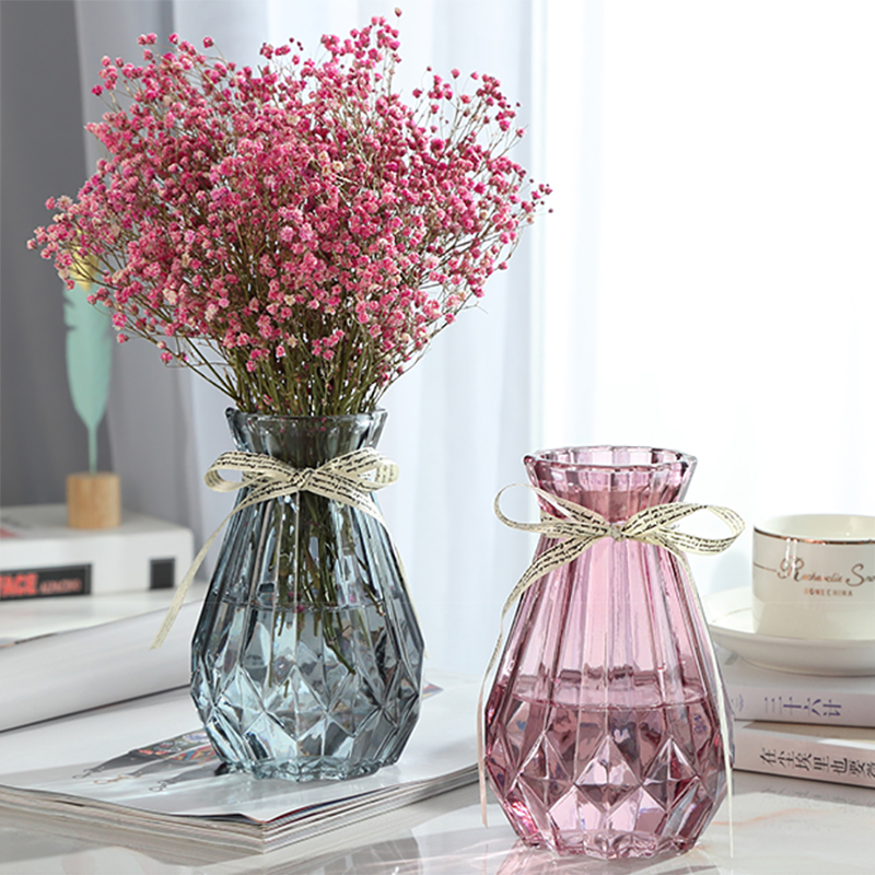 欧式客厅玻璃花瓶透明彩色水培植物装饰摆件花瓶